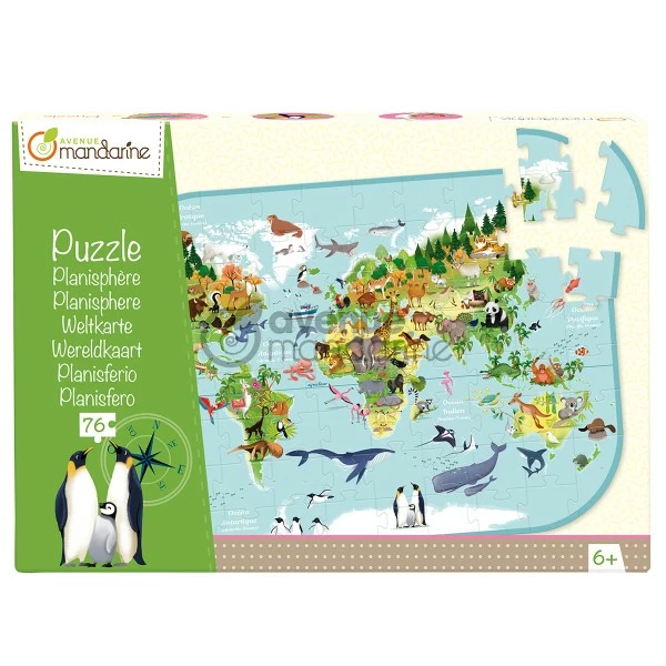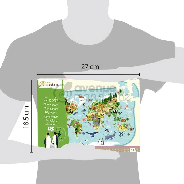 Grâce à ce puzzle éducatif « Planisphère », ils pourront découvrir la carte du monde ainsi que les différents animaux qui vivent sur chaque continent.