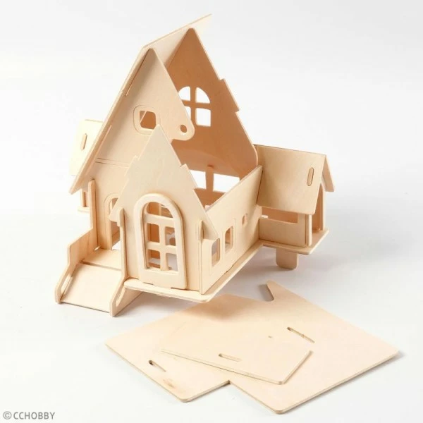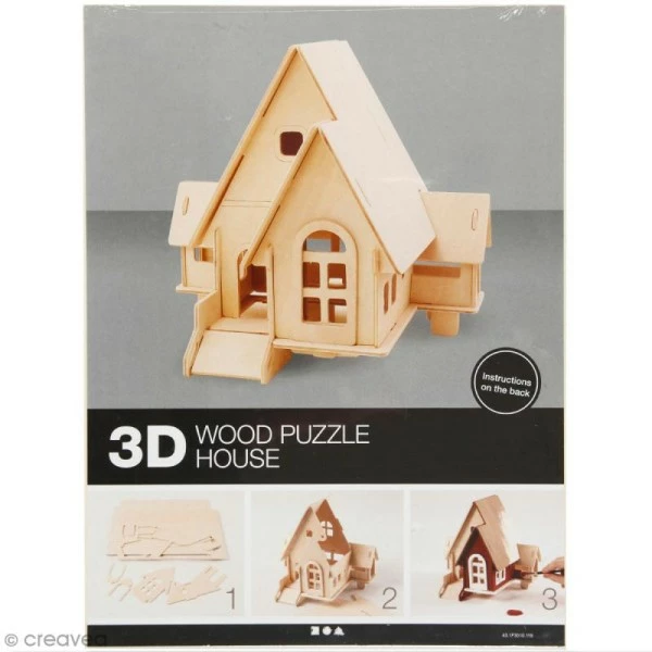 Description de Puzzle 3D à décorer – Petite maison – 19 x 22,5 cm