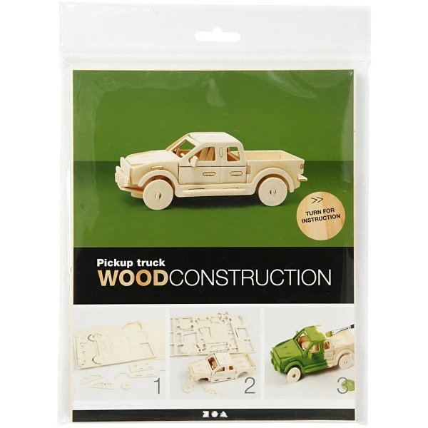 Données techniques pour Puzzle 3D en bois à monter – Camion Pick-up – 19,5 x 8 x 12 cm