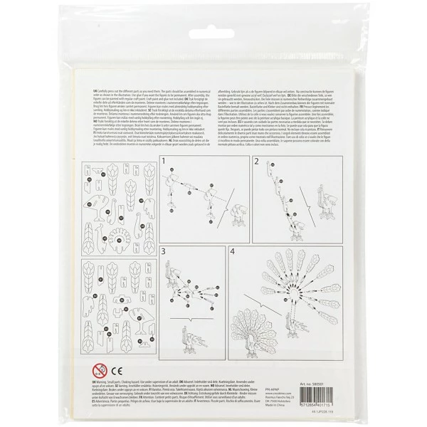 Données techniques pour Puzzle 3D en bois à monter – Paon – 10 x 20,5 x 17,5 cm