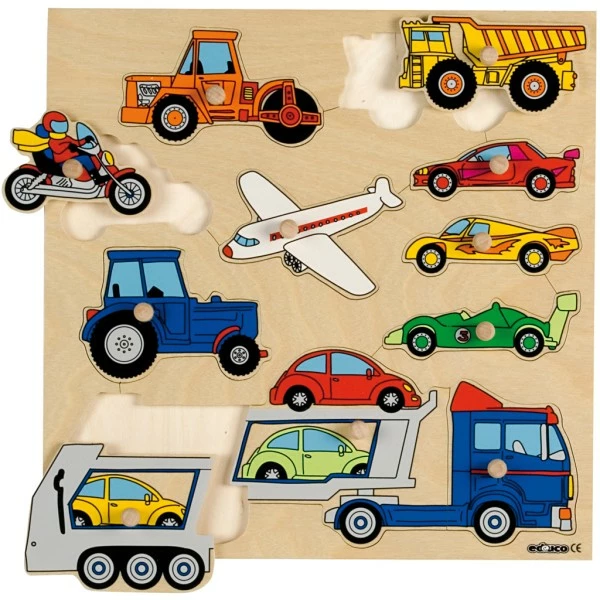 Puzzle en bois pour les plus petits. Toutes les pièces ont des boutons et sont donc faciles à saisir et à remettre en place par les petits doigts. Renforce la capacité d’observation, la motricité fine, la concentration et le langage de l’enfant