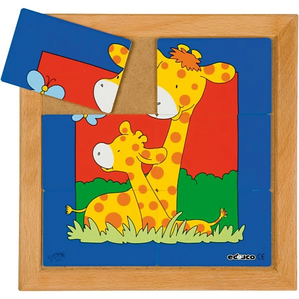 Puzzle avec joli motif animalier. Cadre en bois avec pièces en plastique sans PVC ni phtalate. 6 morceaux