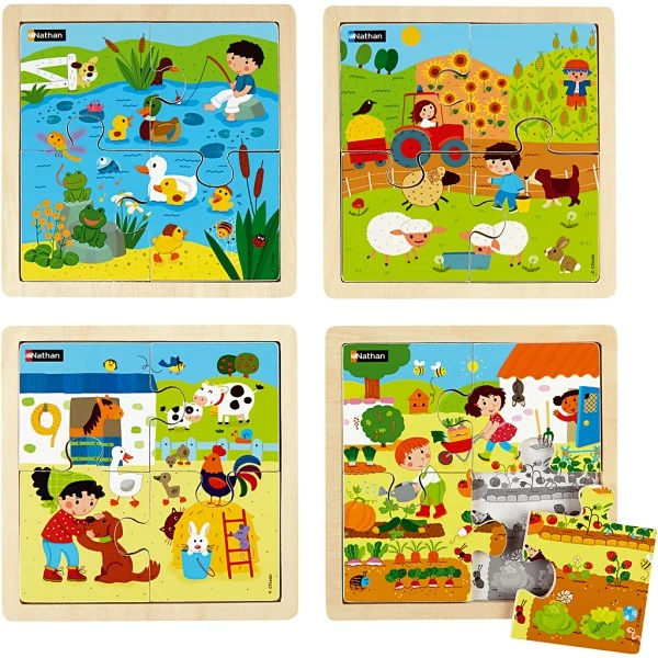 Description de Puzzle en bois Nathan A la campagne 4 pcs/ 1 pcs