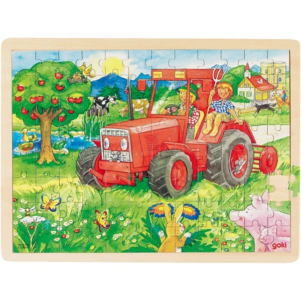 Puzzle avec tracteur sur Prairie. 96 pièces