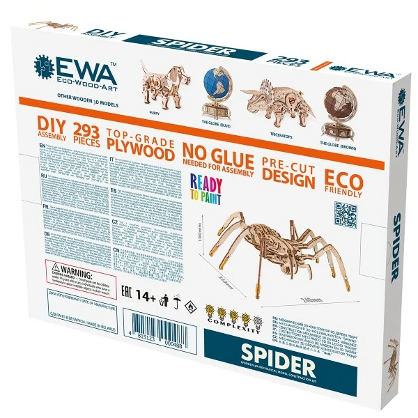 Données techniques pour Puzzle 3D mécanique en bois – Araignée – 24 x 35 x 10 cm – 293 pcs