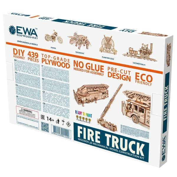 Données techniques pour Puzzle 3D mécanique en bois – Camion de pompier – 37,8 x 9,8 cm – 439 pcs