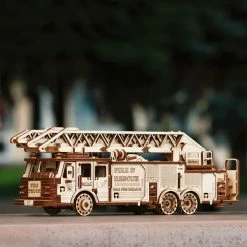 Description de Puzzle 3D mécanique en bois – Camion de pompier – 37,8 x 9,8 cm – 439 pcs