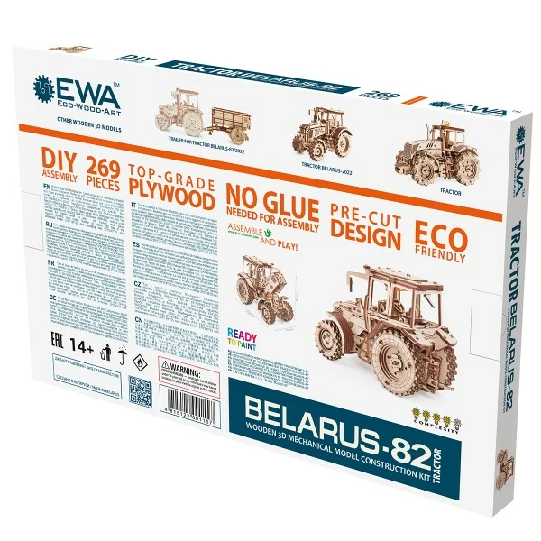 Données techniques pour Puzzle 3D mécanique en bois – Tracteur – 21,8 x 11,8 x 15,5 cm – 269 pcs