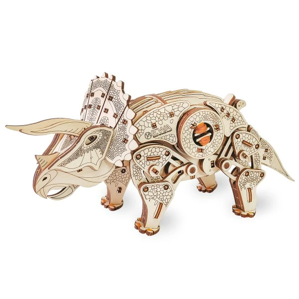Description de Puzzle 3D mécanique en bois – Tricératops – 32 x 16 x 10,5 cm – 283 pcs