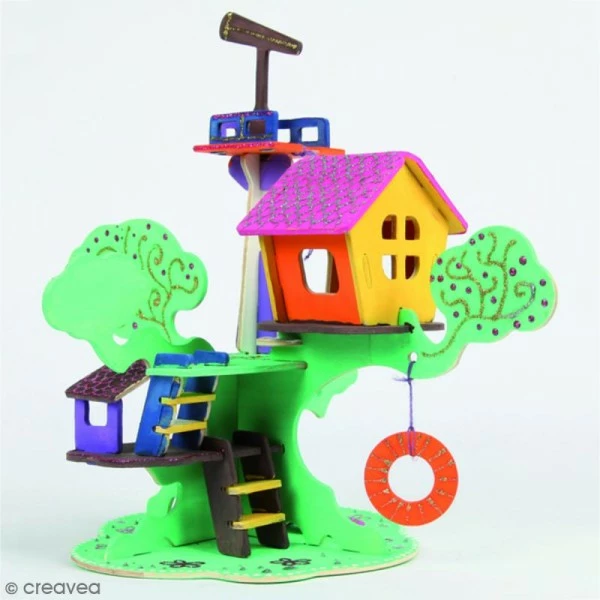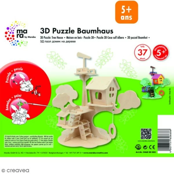 Ce Puzzle 3D Maison d’arbre plaira beaucoup aux enfants à partir de 5 ans. Plus qu’un simple montage, votre enfant adorera décorer son puzzle 3D Maison d’arbre avec de la peinture, des stickers, etc ! En assemblant les 37 éléments en bois, les enfants apprendront agilité et patience en plus de s’amuser et créer !