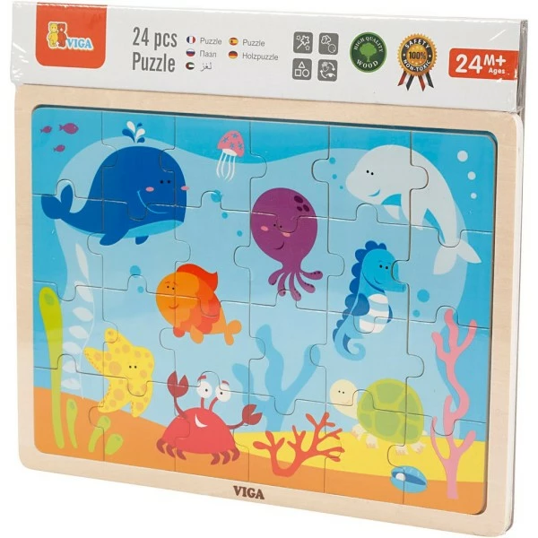 Puzzles en bois VIGA , Animaux marins, dim. 30×22,5 cm, 1 pièce, 24 brickor