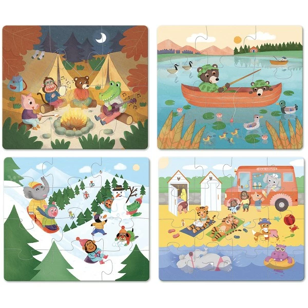 Découvrez ces 4 puzzles évolutifs de 6, 9, 12 et 16 pièces sur le thème des vacances pour les tout-petits dès 2 ans.